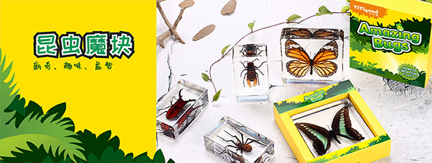 昆蟲魔塊系列產(chǎn)品,是由昆蟲包埋標(biāo)本配套觀察工具組成。標(biāo)本晶瑩通透、精致小巧,昆蟲自然真實、栩栩如生,激發(fā)孩子的無限好奇。通過對昆蟲標(biāo)本的觀察、認知,培養(yǎng)孩子的興趣愛好、觀察能力和探索能力。