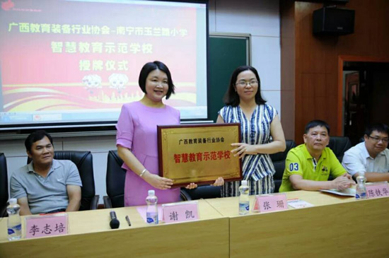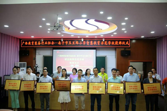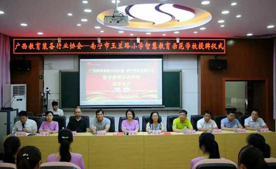 2018年6月27日上午,廣西教育裝備行業(yè)協(xié)會(huì)智慧教育示范學(xué)校掛牌儀式在南寧玉蘭路小學(xué)舉行,標(biāo)志著南寧市玉蘭路小學(xué)新時(shí)代教育信息化發(fā)展駛?cè)肓丝燔嚨,具有里程碑式重要意義。與會(huì)領(lǐng)導(dǎo)、全國教育裝備界的各知名企業(yè)代表、愛心人士、家長代表、教師代表,一同出席了活動(dòng),見證了這一歷史性的時(shí)刻。